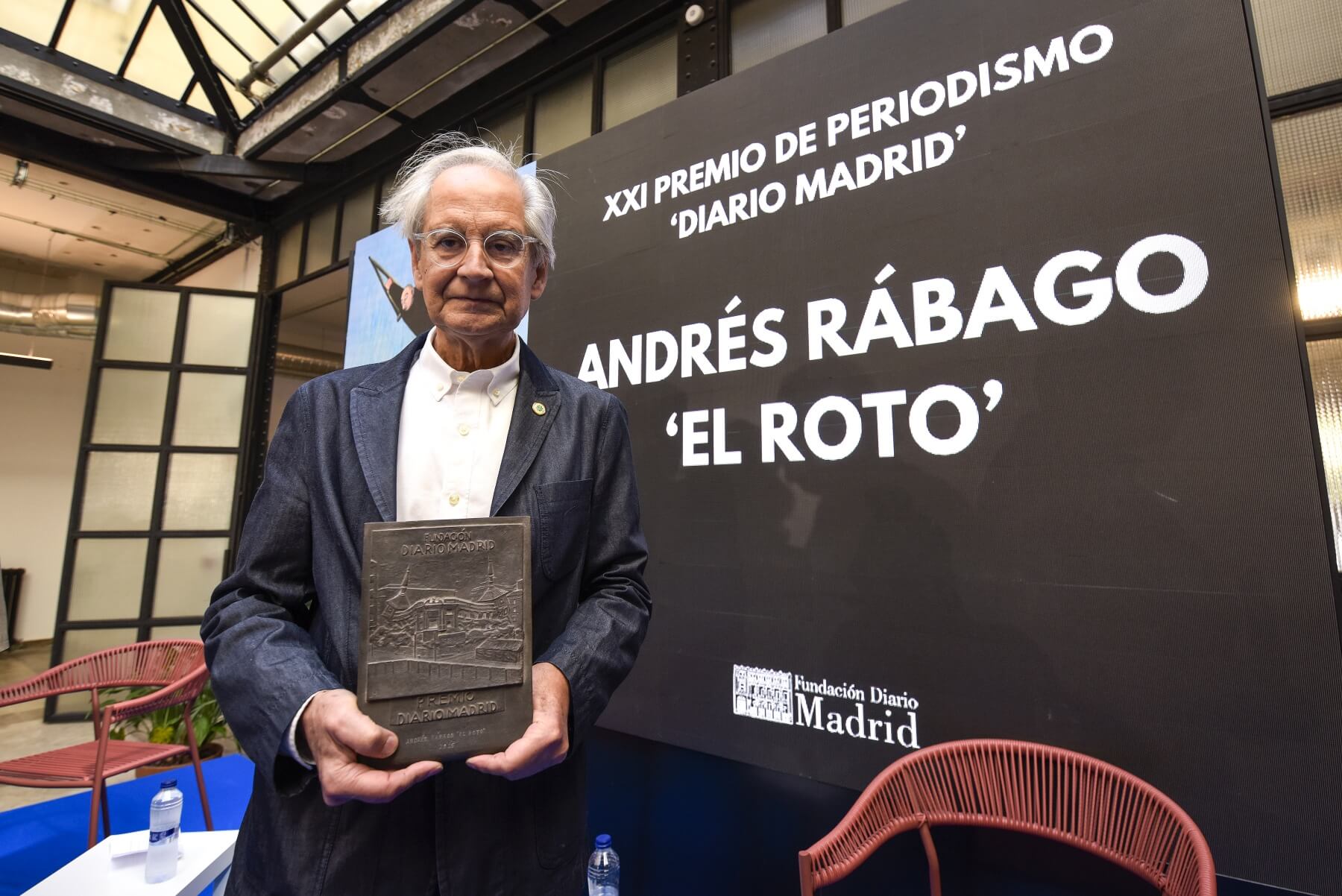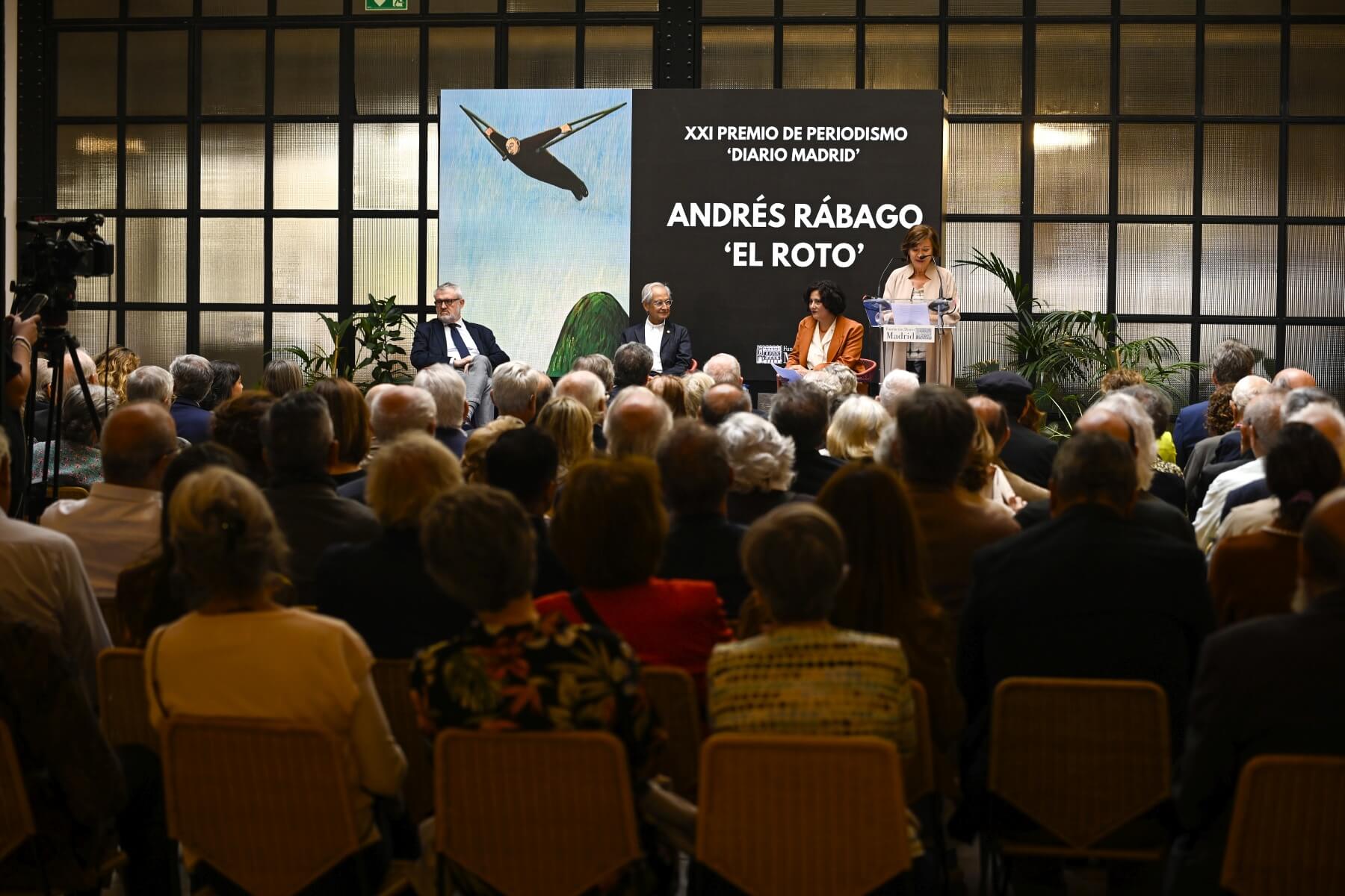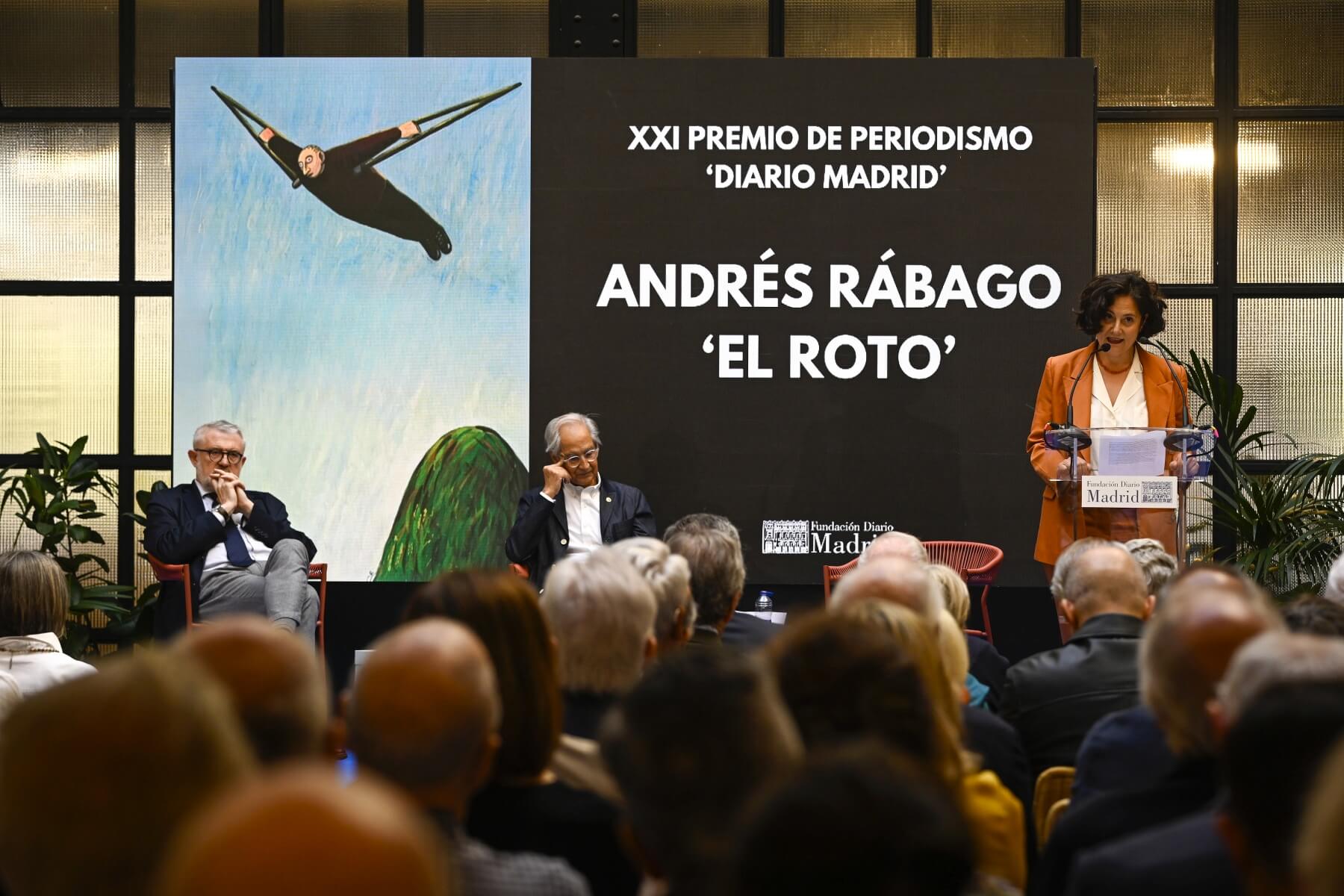 El viñetista y pintor Andrés Rábago, conocido como El Roto, ha recibido el XXI Premio de Periodismo “Diario Madrid” en un acto celebrado en la sede de la Fundación Diario Madrid. Con este galardón, dotado con 12.000 euros y un bajorrelieve en bronce obra de Julio López Hernández, se reconoce una trayectoria ejemplar y sostenida durante más de medio siglo, que ha marcado a varias generaciones de españoles.