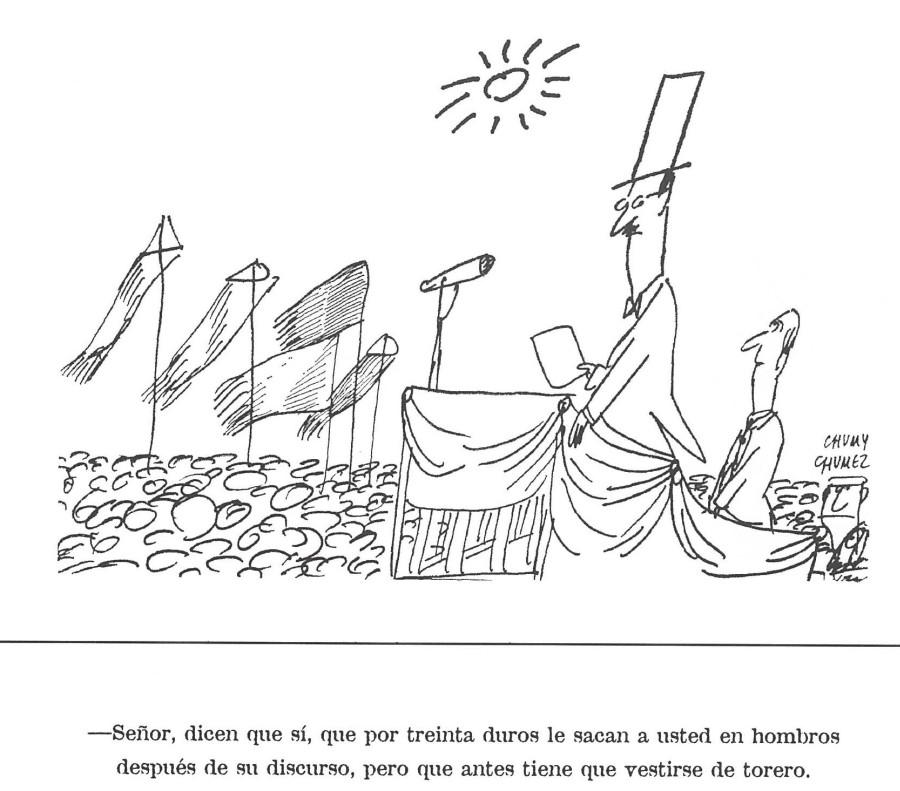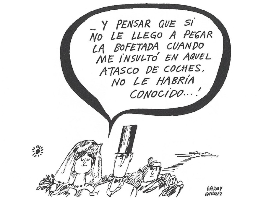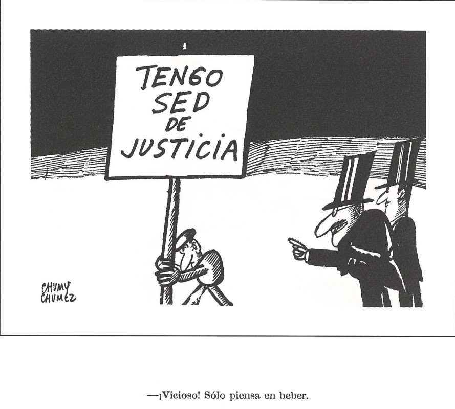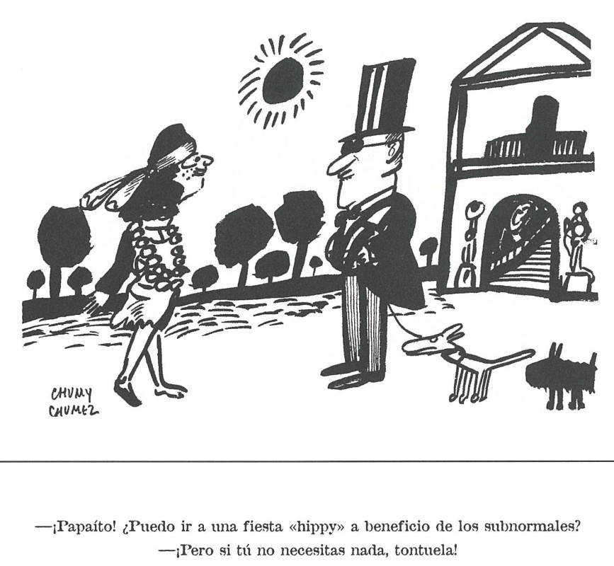 Organizada por la Asociación de Periodistas Europeos en colaboración con la Fundación del Diario “Madrid” y Caja Duero, la muestra incluye 250 viñetas de Chumy Chúmez publicadas en la página tres del Diario “Madrid” entre 1967 y 1971. Para muchos expertos la época del “Madrid” es la más importante en la trayectoria del viñetista donostiarra tanto por la calidad de su dibujo como por el contenido de sus leyendas. Durante esos años ejerció de “editorialista involuntario” del periódico en una defensa incansable de la igualdad y la libertad con las armas del humor y la ironía.
