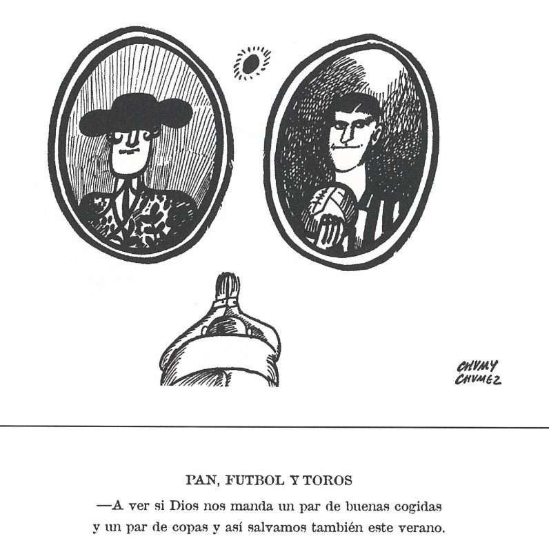 José María González Castrillo, Chumy Chúmez, nació en San Sebastián en 1927. Además de estudiar dibujo y pintura se formó como profesor mercantil. Trabajó en los semanarios La Codorniz y Triunfo y en el diario Madrid, donde colaboró de manera habitual hasta que fue cerrado por orden gubernativa el 25 de noviembre de 1971. En los años de la transición fundó el semanario de humor Hermano Lobo. Rodó documentales, redactó guiones cinematográficos, dirigió películas, entre otras «Dios bendiga cada rincón de esta casa» y «¿Pero no vas a cambiar nunca Margarita?», producidas por Manuel Summers. Trabajó como tertuliano en radio y televisión y escribió entre otras obras «Yo fui feliz en la guerra», «Por fin un hombre honrado» o «Pase usted sin llamar». En 1991 recibió el Premio de Periodismo «Francisco Cerecedo». Murió en 2003.