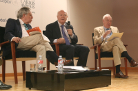 Los cuatro participaron en la Tribuna “La Corona en la política exterior de España” organizada por Diálogo junto a la Asociación de Periodistas Europeos y la Fundación Carlos de Amberes, donde analizaron el papel de la monarquía y más concretamente de S.M. el Rey D. Juan Carlos como referencia esencial del conocimiento y reconocimiento internacional sobre España. Miguel Ángel Aguilar, Secretario General de la Asociación de Periodistas Europeos, fue el encargado de moderar el encuentro.