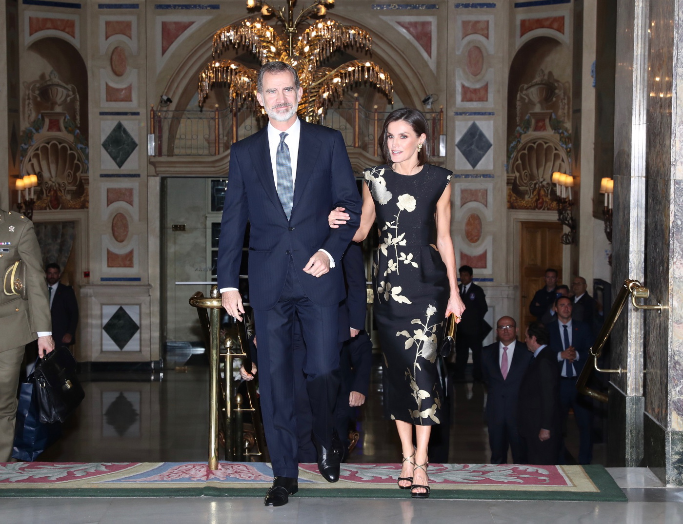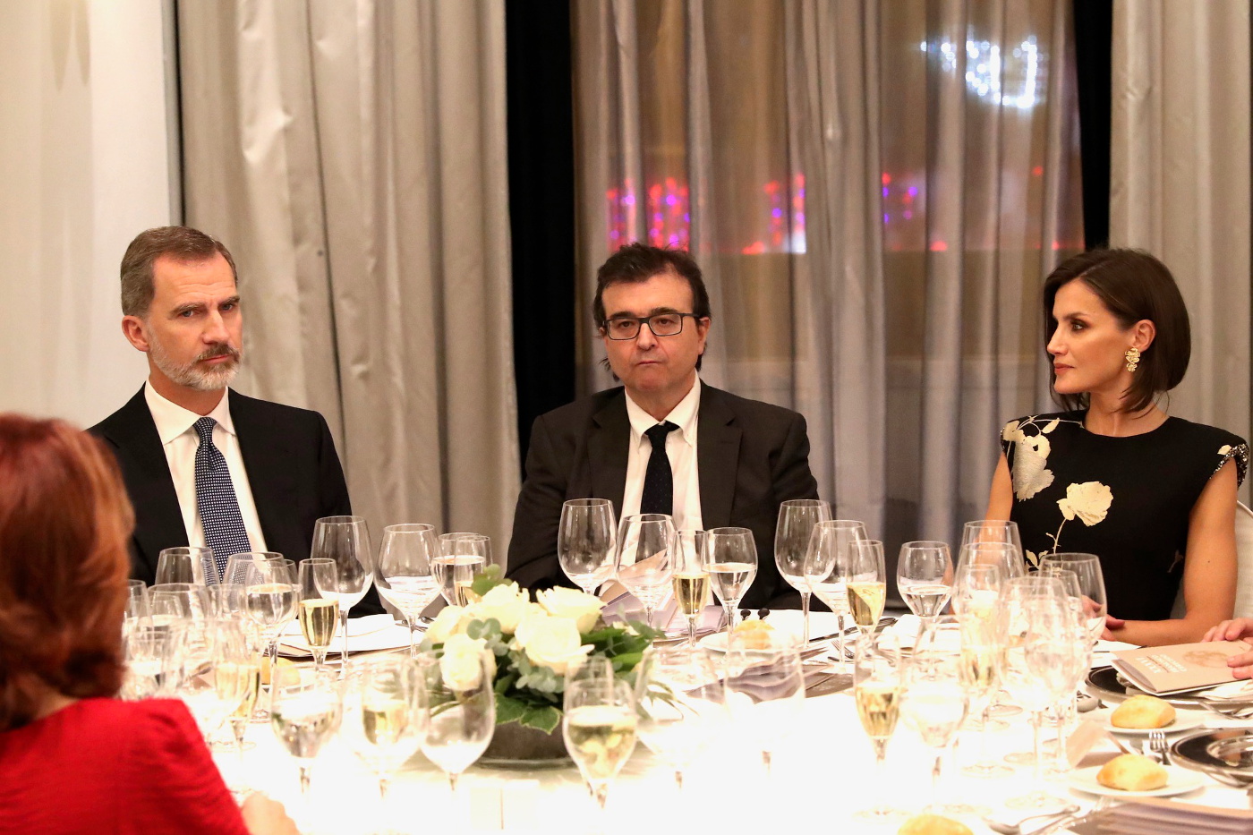 Sus Majestades los Reyes fueron recibidos a su llegada al Hotel Palace por el ministro de Cultura y Deporte, José Guirao; el presidente de la Asociación de Periodistas Europeos (APE), Diego Carcedo; y por el secretario general de la Asociación de Periodistas Europeos (APE), Miguel Ángel Aguilar, entre otras autoridades.