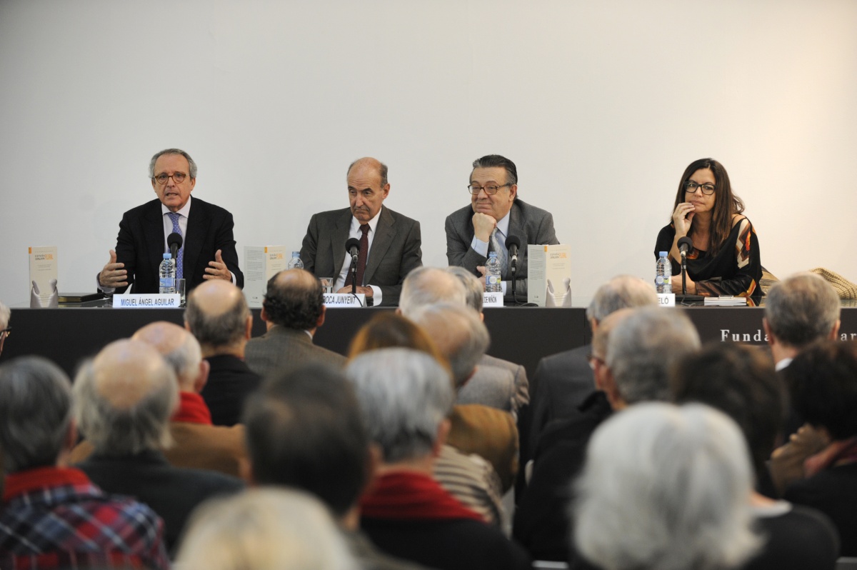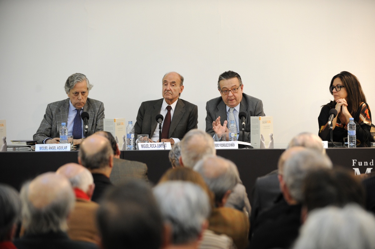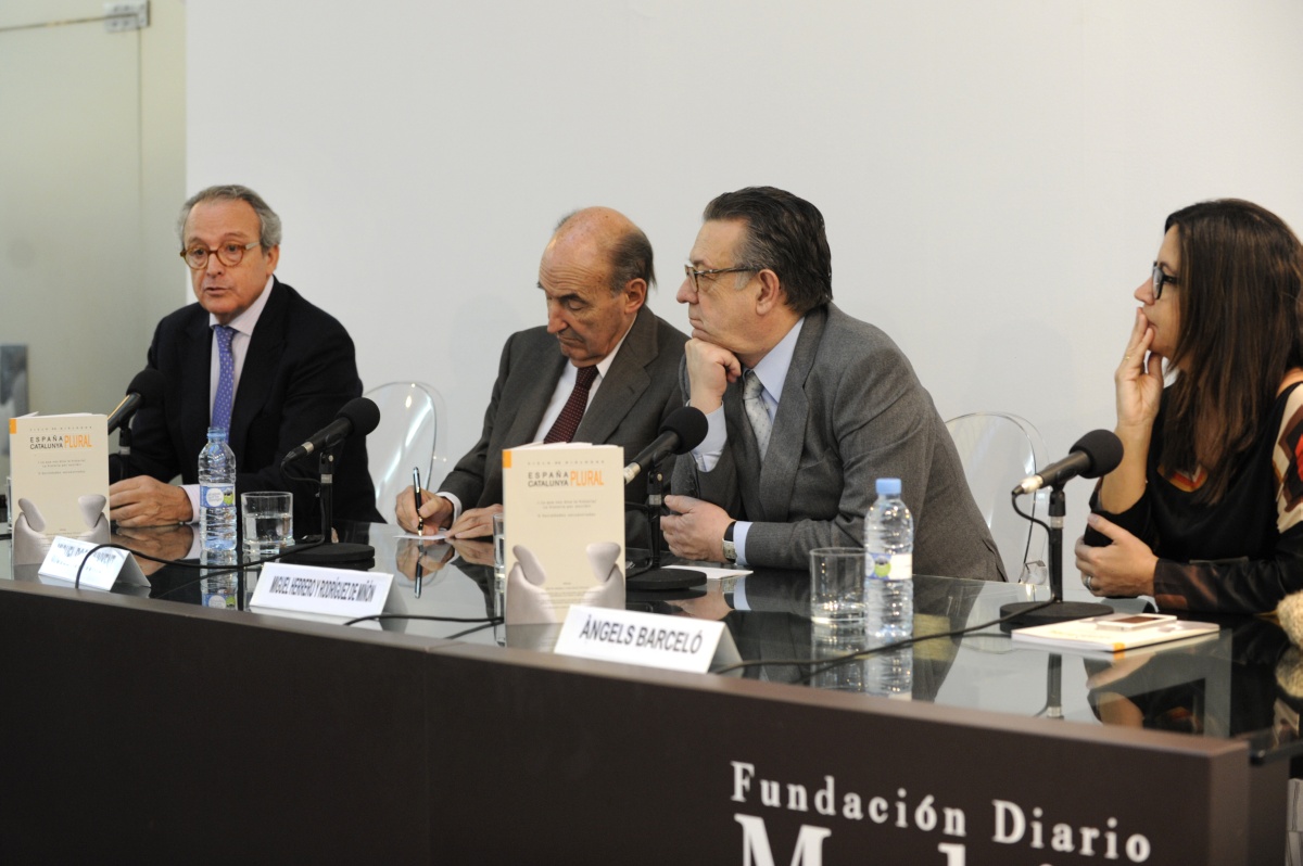 La Fundación Diario Madrid y la Asociación de Periodistas Europeos organizaron el encuentro Recordando la transición, tercera jornada del Ciclo de Diálogos España plural, Catalunya Plural, que contó con la participación de Miquel Roca Junyent y Miguel Herrero y Rodríguez de Miñón, bajo la moderación de Àngels Barceló y Miguel Ángel Aguilar.